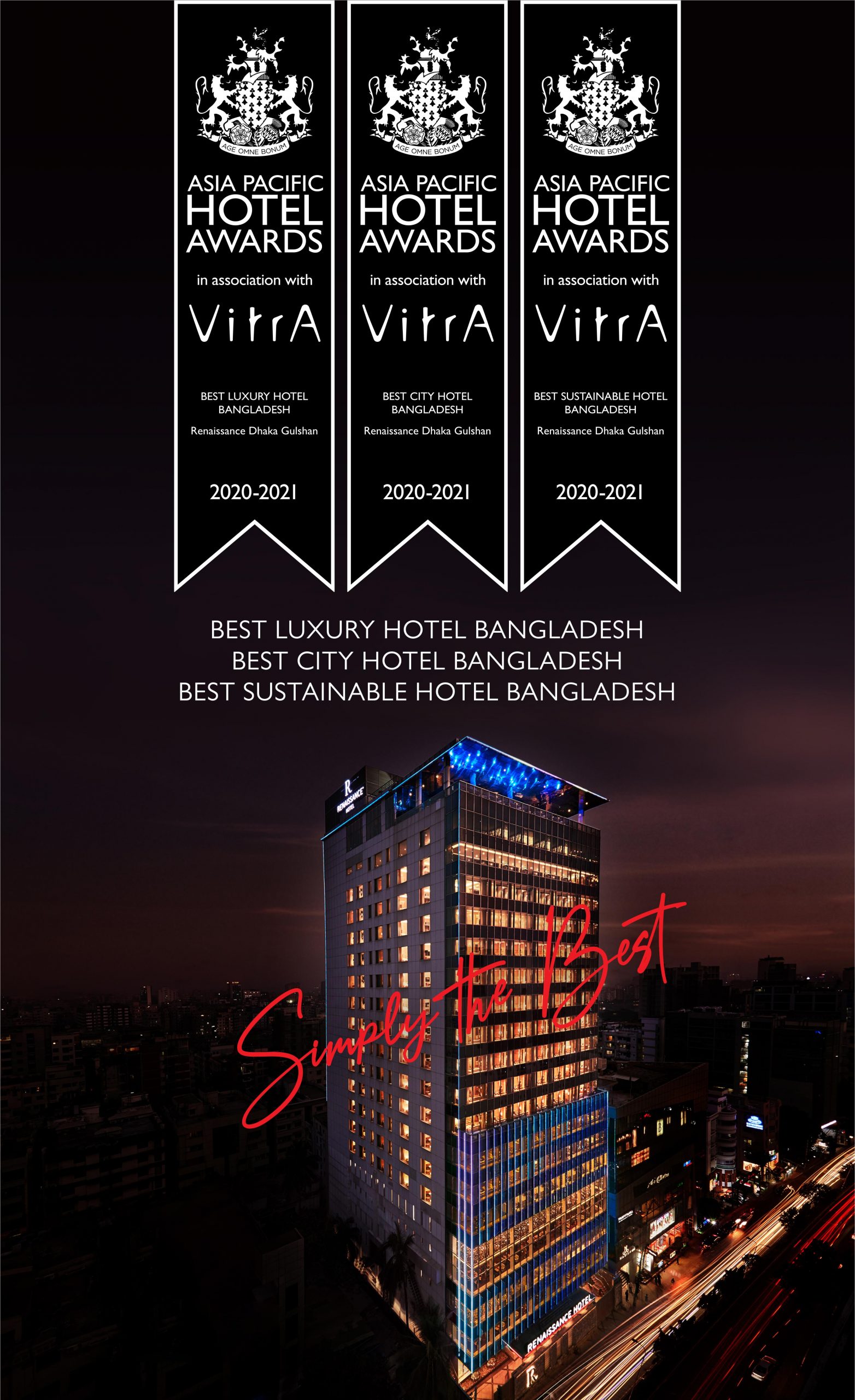 Renaissance Dhaka Gulshan Hotel has received another two awards – “Best City Hotel” and “Best Sustainable Hotel” in Bangladesh at the Asia Pacific International Hotel Award’s for 2020-2021