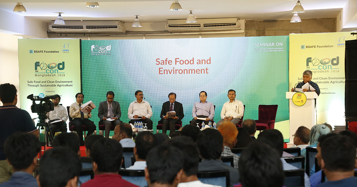 On this occasion, CEMS & BSAFE Foundation jointly hosted seminar titled ‘FoodCon Bangladesh 2018’ (powered by ACI) to discuss various issues related to food and agriculture, such as how sustainable farming can combat environmental hazards and secure safe food supplies from “plot to plate”.