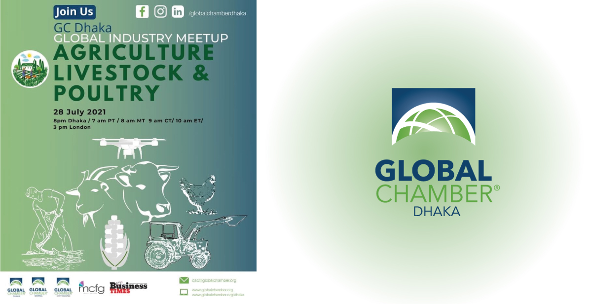 Global Chamber Dhaka, hosted two online business to business matchmaking meetings events on the evenings of July 28 2021 and 11 August 2021 respectively. The first event was based around agriculture, livestock and poultry and the second was for businesses involved with seafood, fisheries and aquaculture. These were held The meetups created a successful amalgamation between global companies and individuals involved in the primary industries and complimentary industries across the supply chain of the areas of focus. The first meetup was ideal for companies involved in any stage of the agro industry, as well as, complimentary industries such as agro-tech, agri-finance, agro insurance, and stakeholder training to support ecosystems and global trade pertinent to this sector. The following meetup was organized for companies involved in any stage of services and retail business, the fish sector investors, independent restaurant owners, seafood exporters and importers, tech companies, packers, distributors and pertinent with aquaculture research to support ecosystems and global trade related to this seafood industry.