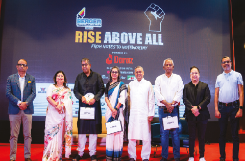 What the youth aim to get most out of Rise Above All is the opportunity to engage and interact with these successful personalities, understand their journey, their struggles, and find the inspiration to overcome life’s difficulties. Rupali Chowdhury, MD of Berger Paints Bangladesh, took the stage to share her inspiring message of self-belief and determination. Drawing parallels between success and a well-balanced railroad, she emphasises the importance of nurturing both big dreams and the courage to overcome life’s challenges.