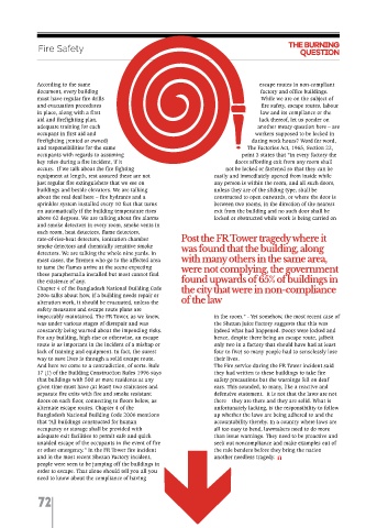 According to the law, or more specifically, the Bangladesh in the same area, were not complying, the government found unaided escape of the occupants in the event of fire seek out noncompliance and make examples out of