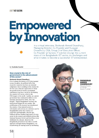 proportion unimaginable a decade ago. been made possible by the ICT sector. the health sector? most importantly, ensure the Shohorab Ahmed Chowdhury: planning with proper risk analysis respected company in the w