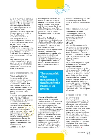 KEY PRINCIPLES The sponsorship DMADV are: D – Define, M – Measure,