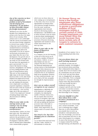 were allowed to work in our company. The that opportunity, and that's rest of my family members. More thing to follow in business”, it is have politicized this sector and private sector to invest in innovative going to provide us an advantage. grow exponentially if we can company but also as a country. It is difficult to point out one