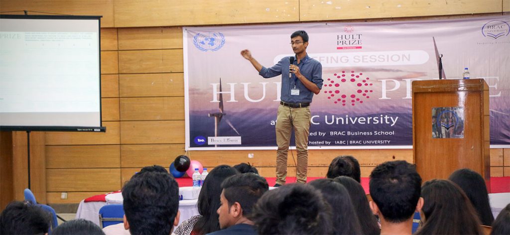 Later, the session was taken forward by former HULT Prize Campus Director and HULT Prize 2014 Regional Finalist, Asif Chowdhury, who shared the lessons he had learned from the HULT journey emphasizing more on the significance of familiarizing oneself with the various issues faced by the slum dwellers to be able to initiate change in a better way.